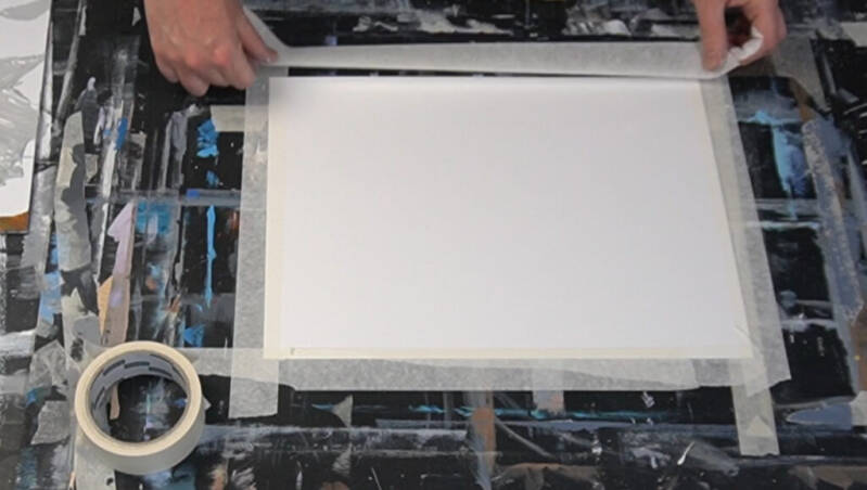 Plak het papier aan een plank met schilderstape. Je kunt ook acrylverfpapier kopen dat op een blok verlijmd is, dan hoef je dit natuurlijk niet te doen.