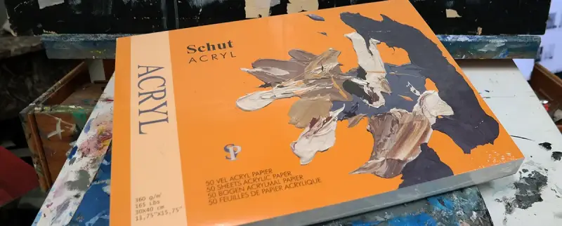 Ik heb verschillende soorten papier getest. Het acrylverfpapier van Schut vind ik erg fijn en het is gunstig geprijsd.