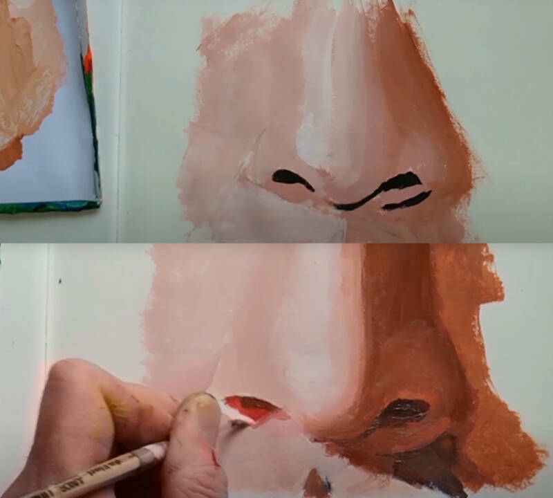 Hieronder: zwarte neusgaten. Schilderij ziet er meteen 'plat' uit.