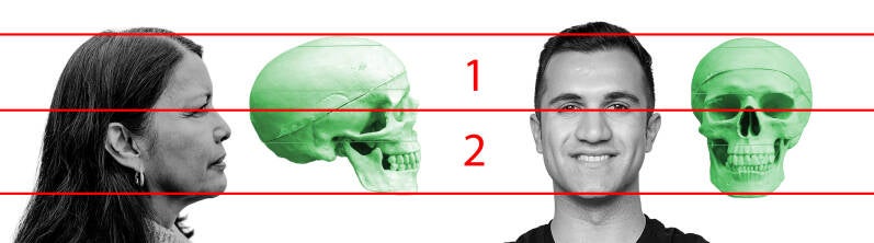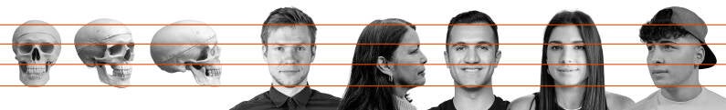 Aan de hand van de schedel kun je ook veel leren over basisverhoudingen (proporties). Ieder mens is gelukkig uniek, maar er is wel een algemene richtlijn te geven.
