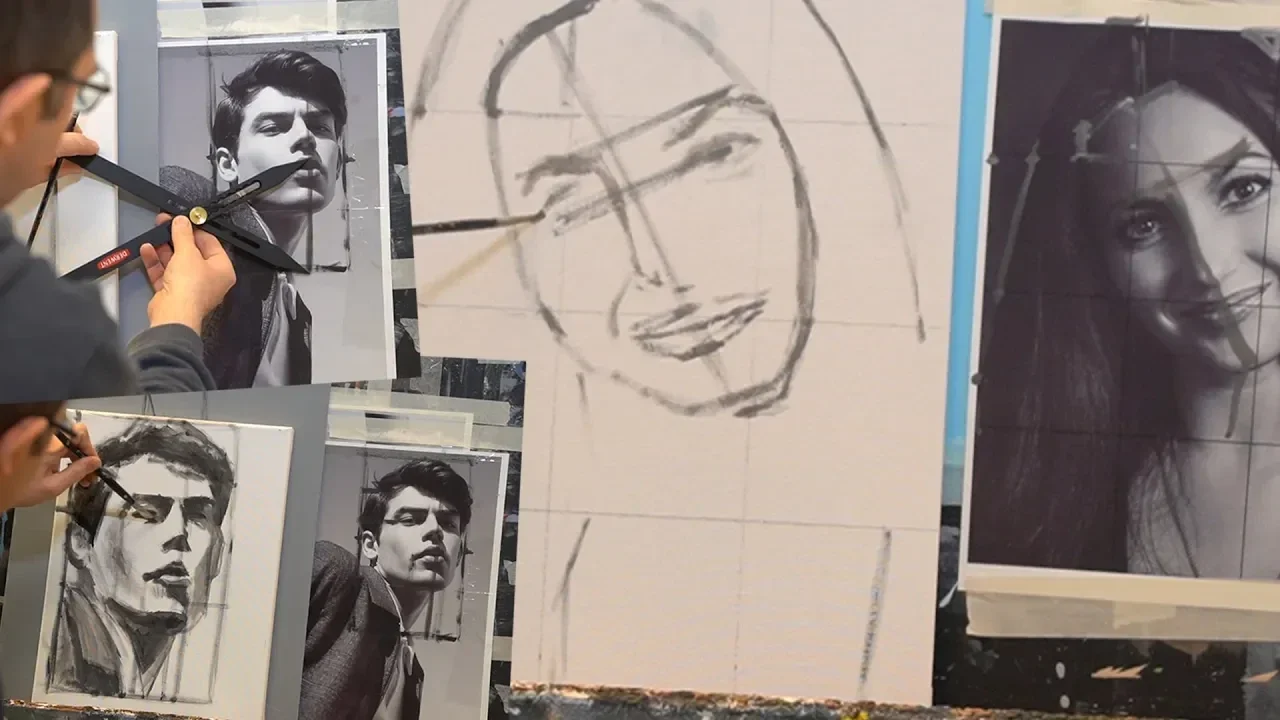 Afbeelding in schaal vergroten om na te schilderen. Schaalverdeler, raster, doordrukken en tips. (00:50:19)