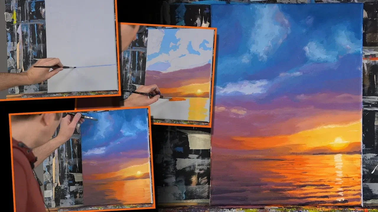 Deze keer gaan we een zonsondergang schilderen met acrylverf. Doe je ook mee?