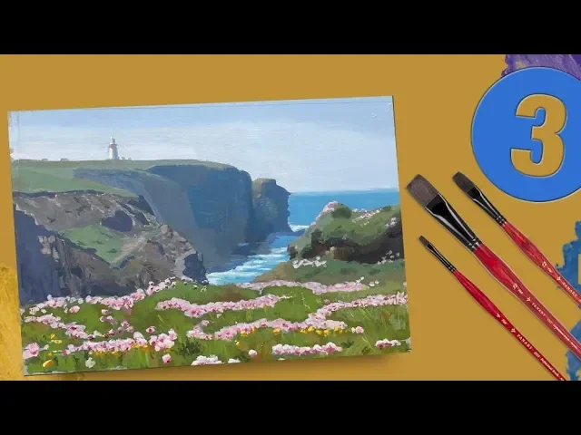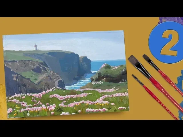Ik laat een manier zien waarop je het schilderen van zeelandschappen kunt aanpakken. Je kunt eerst de grote globale kleurvlakken schilderen, daarna kun je met nieuwe lagen wat detail aanbrengen.