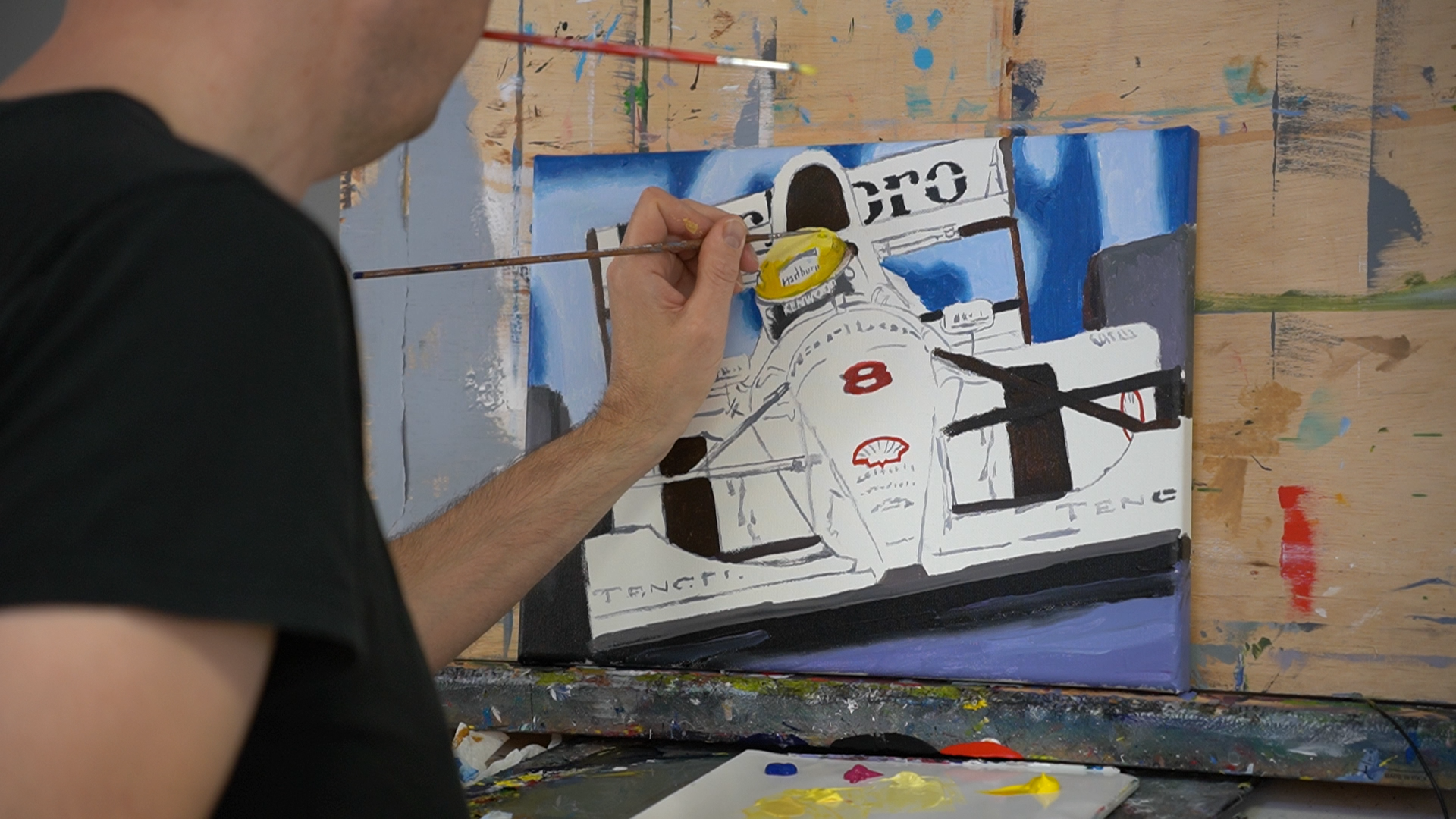 Ayrton Senna in de MP4/8 (acrylverf) 40x30cm