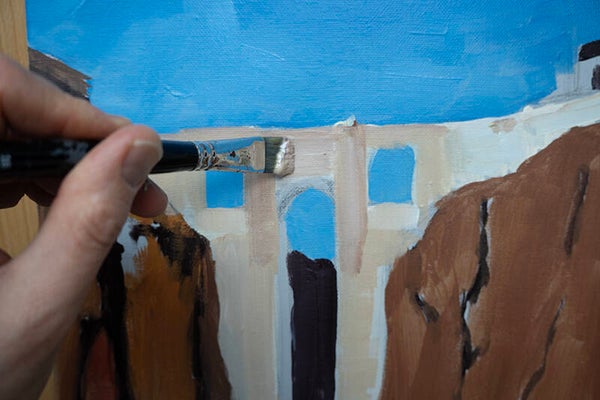 Het schilderij kan direct aan de muur, de randen zijn meegeschilderd en er zit een touw aan de achterkant.
